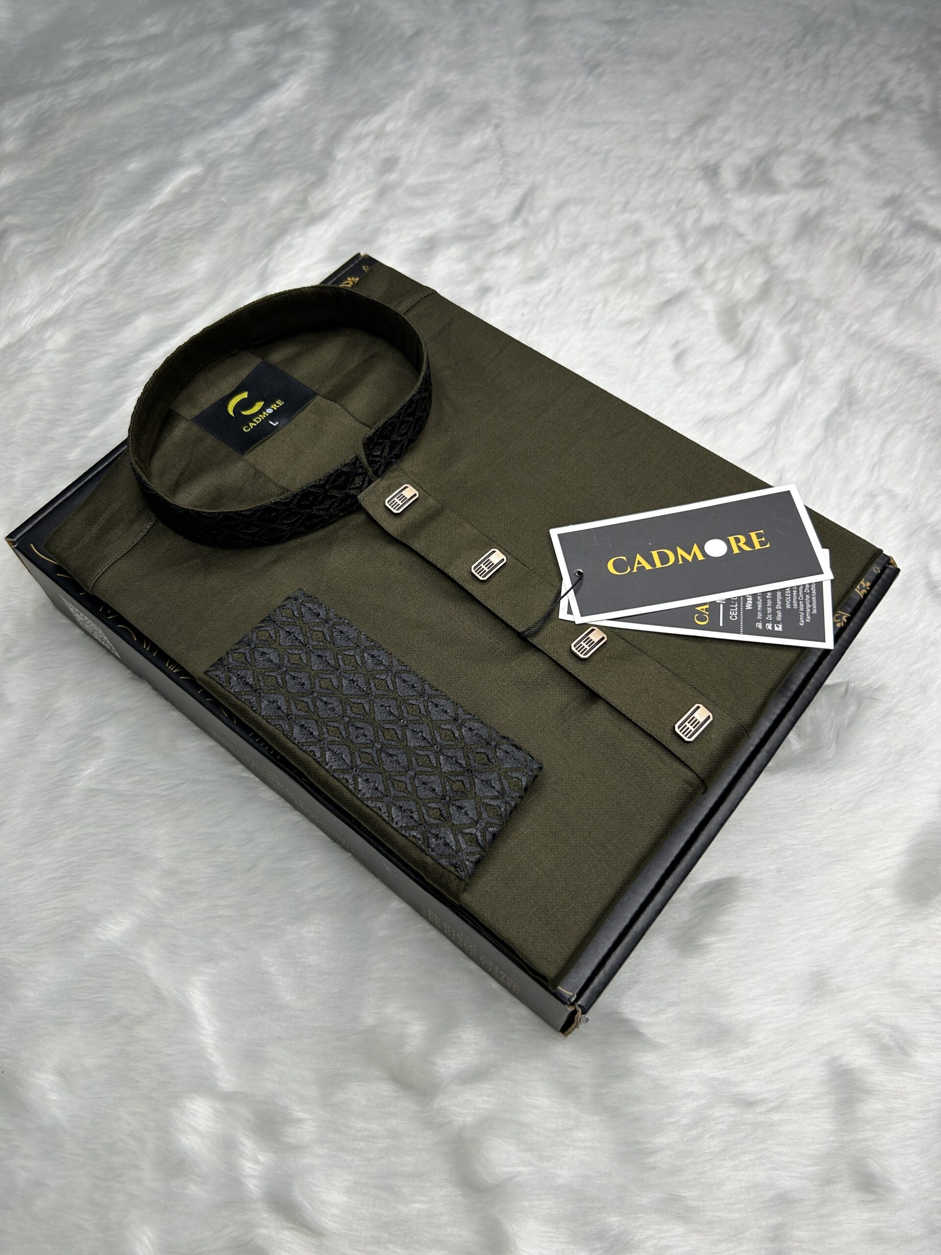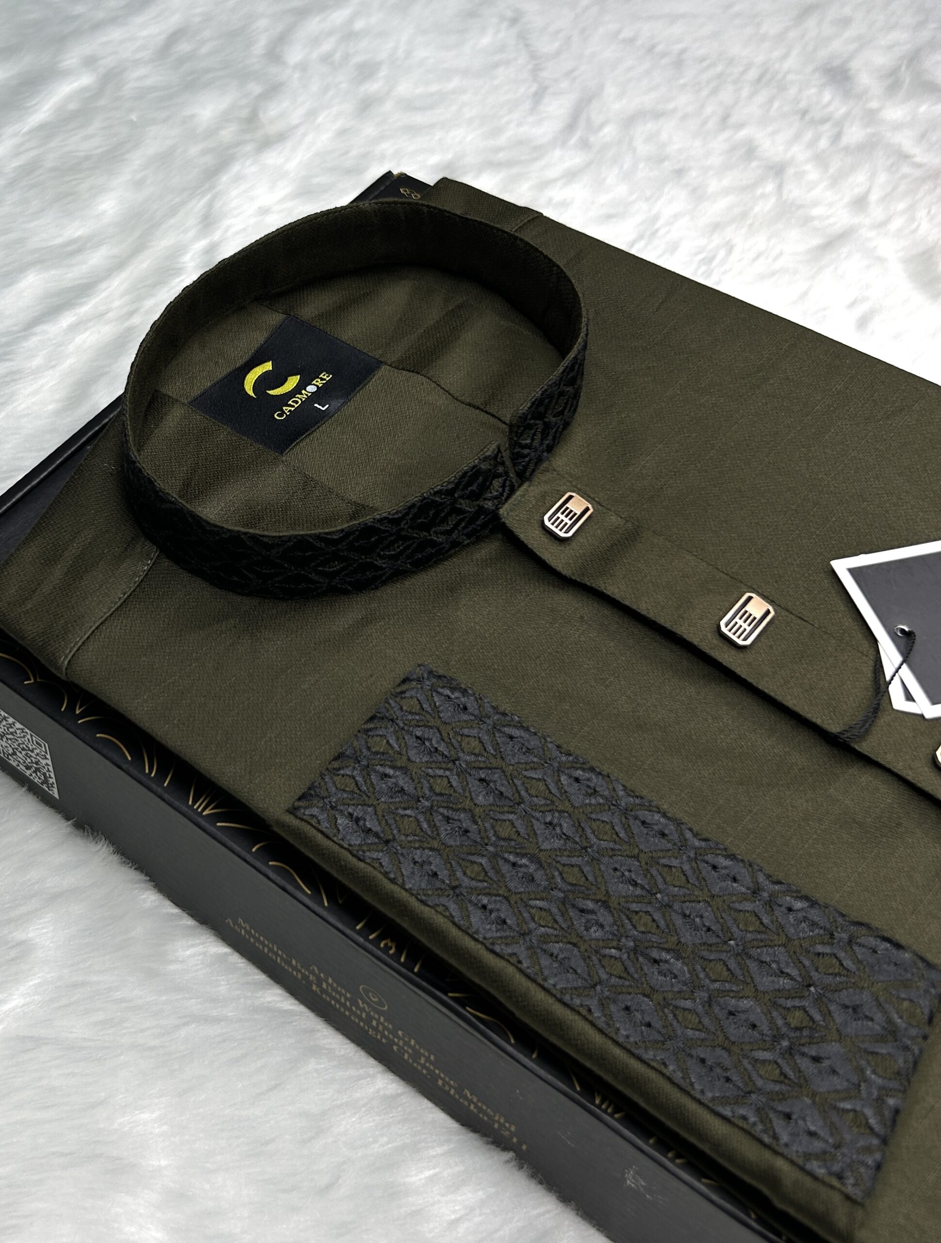 Black Embroidery Deep Olive Panjabi
